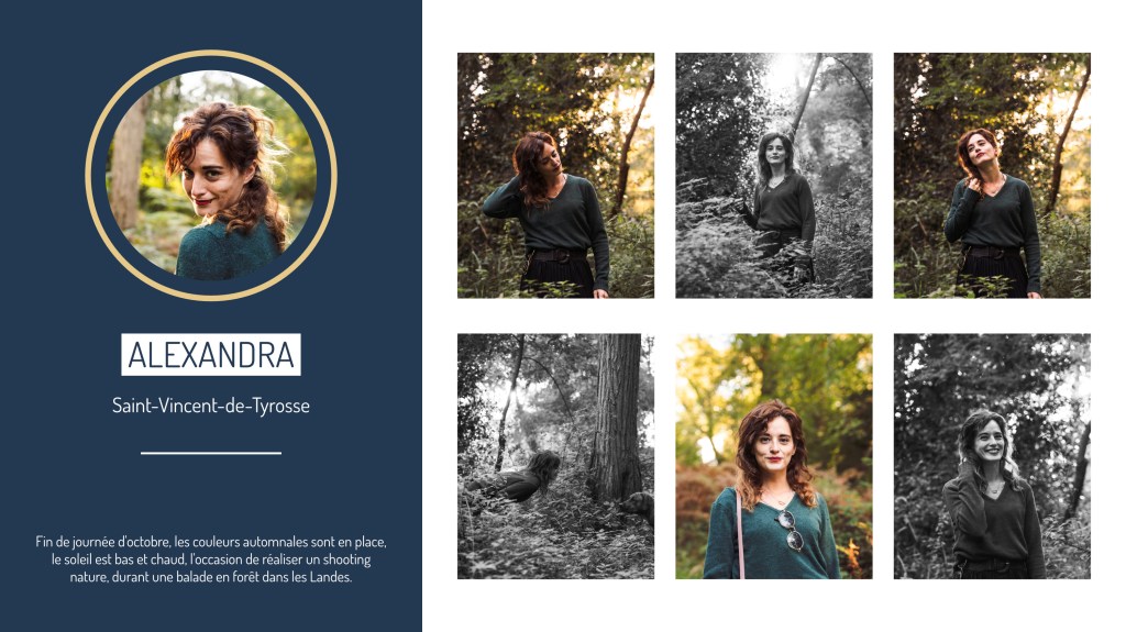 Comme vous pouvez le constater, je suis adepte des photos en extérieur, avec de la lumière naturelle et la possibilité d’avoir une diversité d’arrière plan lors d’un seul et même shooting.